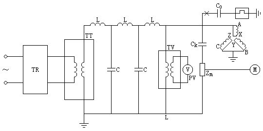 发电机定子绕组局部放电试验现场实际采用的接线如图1-1所示。