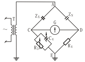 CX=(CNR4)/R3×1/(1﹢tanδ)=(CNR4)/R3,pF (4-12)