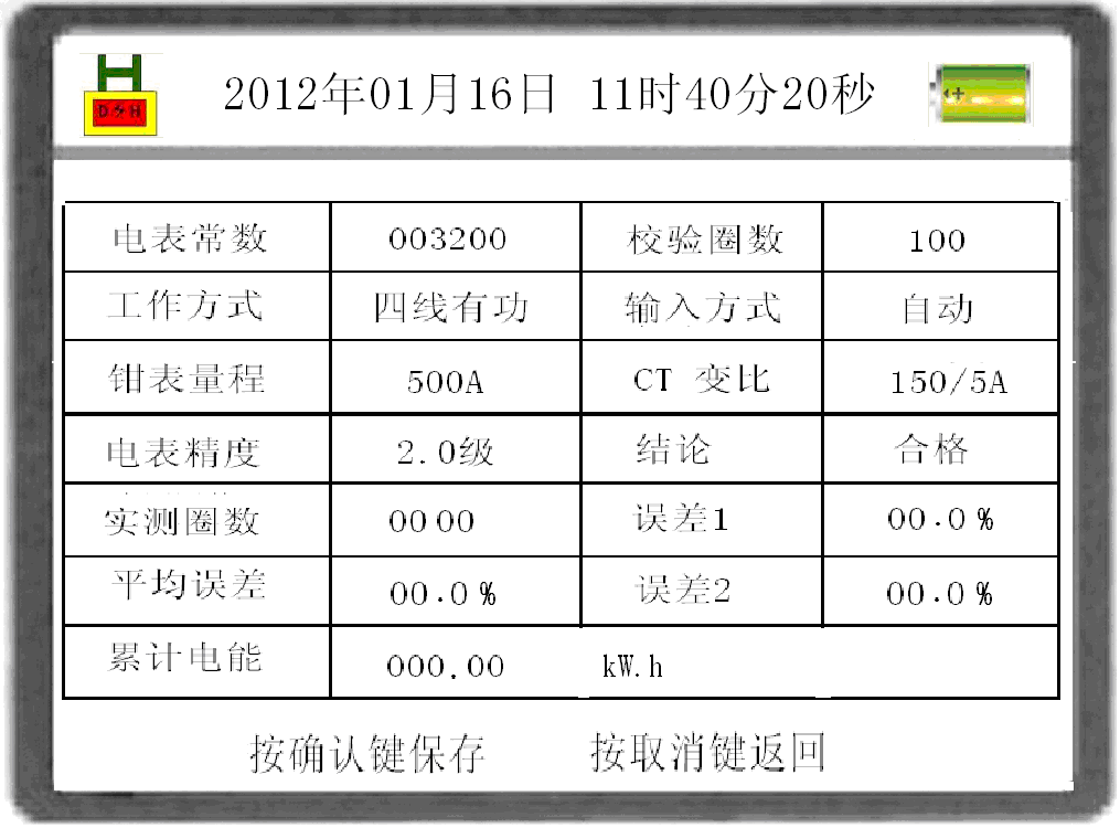 当校验结果显示后,可按“确认”键存储当前各参量。