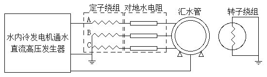 (5) 发电机汇水管的接地电缆应拆除,试验结束后才能回装。并保证发电机汽励两侧汇水管与机座间的电阻大于30kΩ,汇水管与定子绕组间的电阻大于300 kΩ(可用万用表测量)。