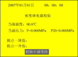 如图7全自动SF6密度继电器校验仪进入自动校验,校验结束后界面底行的'校中请等待'。