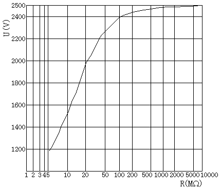 ZC-430A绝缘电阻测试仪的负载特性,即被测绝缘电阻R和端电压U的关系曲线,随绝缘电阻测试仪的型号而变化。图1-2为绝缘电阻测试仪的一般负载特性。当被测绝缘电阻值低时,端电压明显下降。